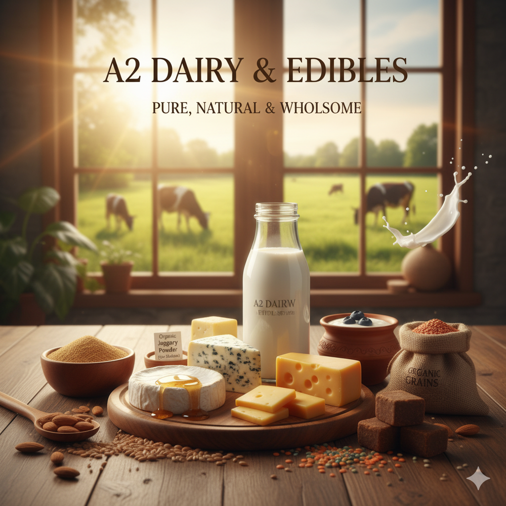Our ghee is hand-churned from pure A2 milk — packed with nutrition, purity, and divine aroma.
